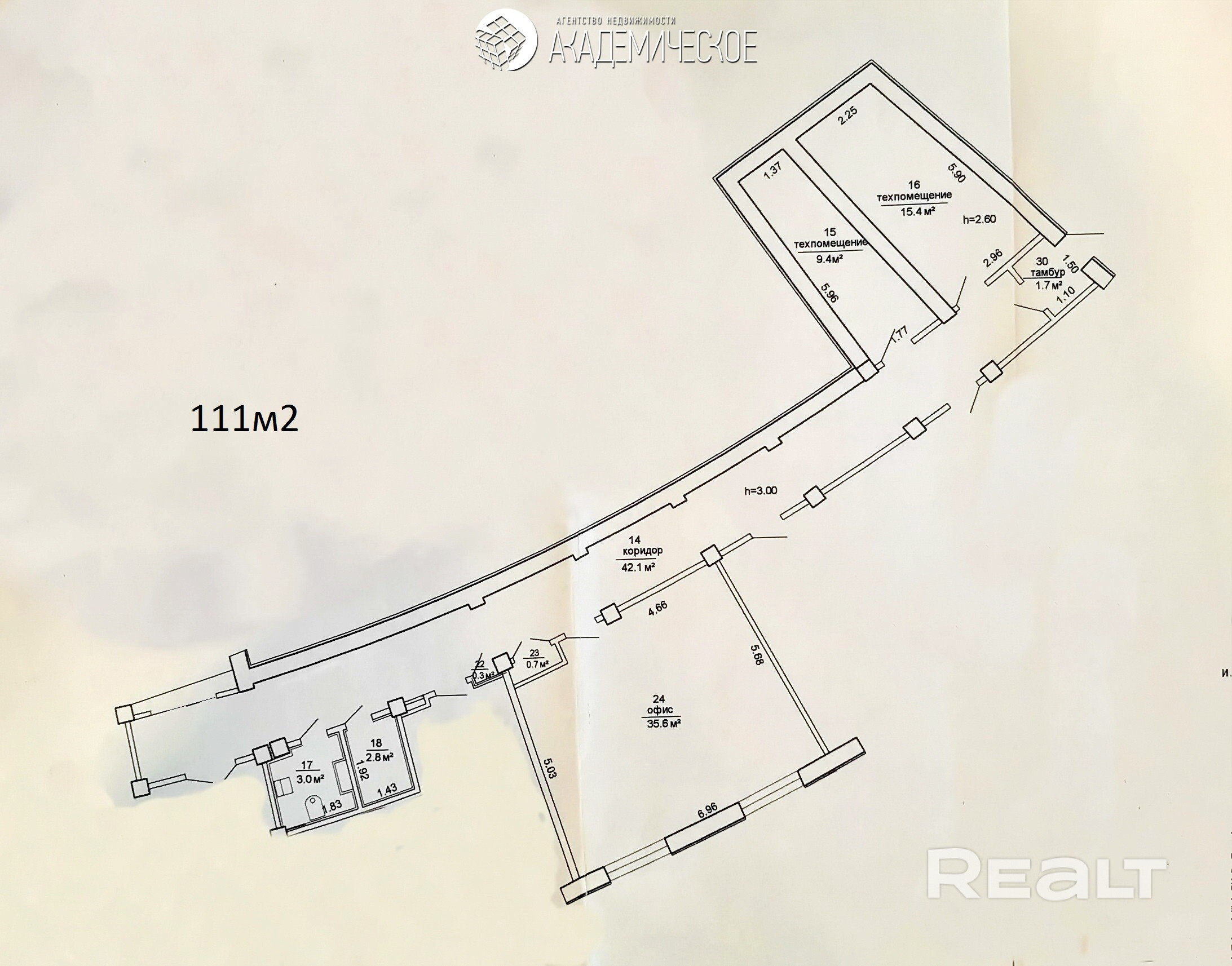 Общая площадь – 210.1м2, цокольный этаж, 2 отдельных входа, 7 помещений разных площадей – от 17-35м2, отопление, освещение, телефонизация, интернет, санузел, кухонная зона, в достойном состоянии.