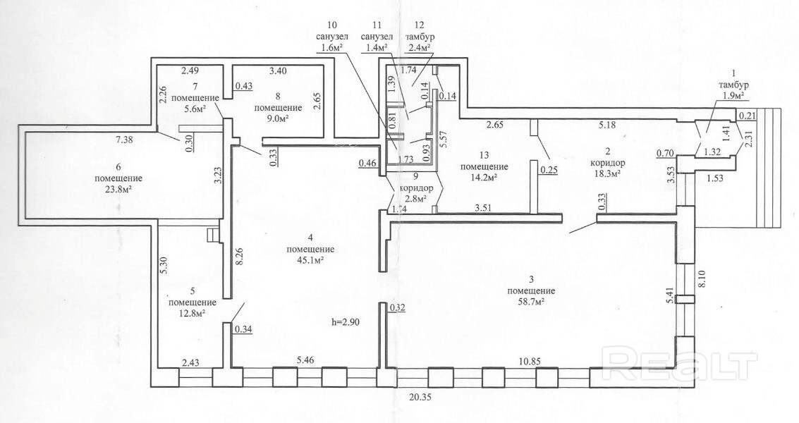 · Высота потолков: 2,90 м