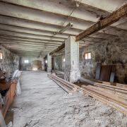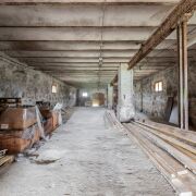 Здание 1905 года постройки. Использовалось как конюшня в начале 20го века. Первый этаж имеет тамбур и основное помещение. Второй этаж- разделен на помещения.