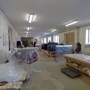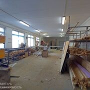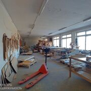 - 1-й этаж состоит из: цехов по обработке древесины, складских помещений, вспомогательных помещений (есть роллетные ворота с выходом на рампу), санузла;