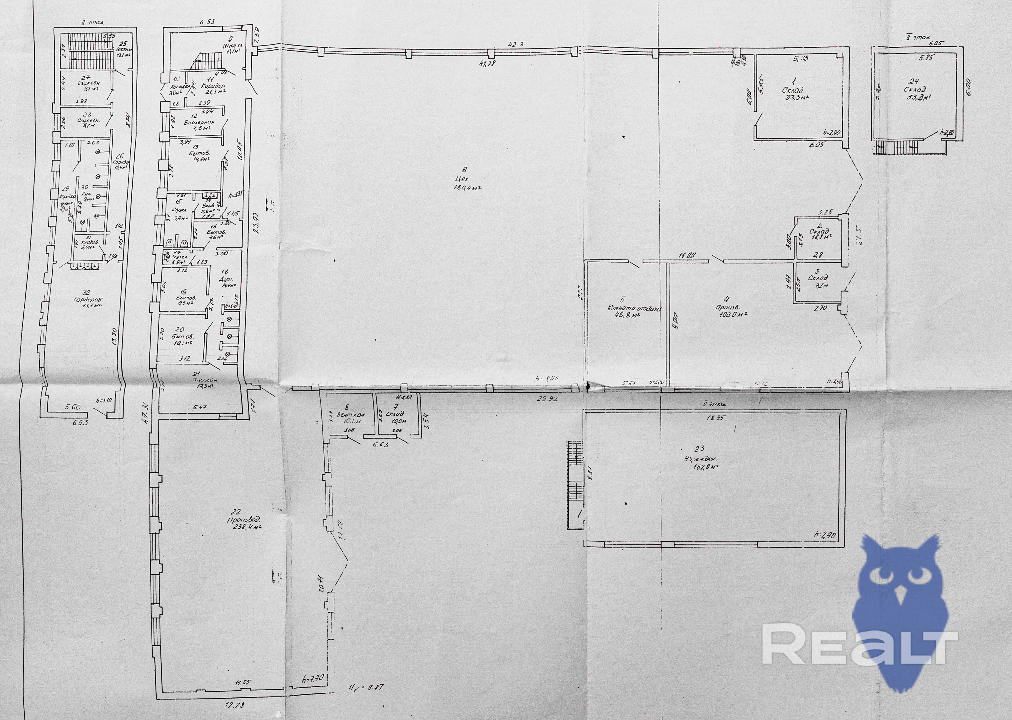 Производственно-складские помещения в Минске по улице Мавра в промышленной зоне. Основное здание площадью 1712 м/кв, после реконструкции, заменены все коммуникации, как внутри, так и снаружи до точек подключения: новые системы отопления, водо- и электроснабжения, вентиляции. Электроснабжение мощностью 150 кВт с возможностью наращивания. Есть своя котельная и тепловой узел. Заменено всё остекление – рамы ПВХ, стекла рефлекторные (обладают зеркальным эффектом, отражают часть солнечного света, поглощают ультрафиолетовое излучение и при этом пропускают достаточное количество света.) В цехах три мостовых крана грузоподъёмностью ≈ 4.8, 3.5 и 2.5 тонны; роллетные системы для подъезда большегрузов. Здание оборудовано системой пожарооповещения и пожаротушения. Интернет оптоволокно. Удобные подъездные пути. В административной части сделан хороший ремонт, все кабинеты с кондиционерами. Два санузла, комната для приёма пищи, раздевалка с душевой и парилкой. Два других здания новые, металлоконструкции, обшиты сэндвич-панелями, подключены к электричеству, центральному отоплению, воде и канализации. Одно площадью 290 м/кв, шесть ролетных выскоких ворот; второе 120 м/кв.