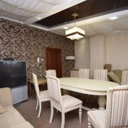 На первом этаже находятся кухня, бар и общий зал, на втором – три отдельных банкетных зала, административное помещение, комната отдыха персонала и душевая с санузлом. Цокольный этаж разделён на холодильные камеры, кладовые, цех приготовления и моечную