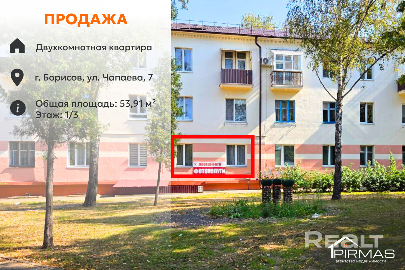✅Продаётся 2-комнатная квартира на первом этаже по адресу г. Борисов, ул. Чапаева, 7.