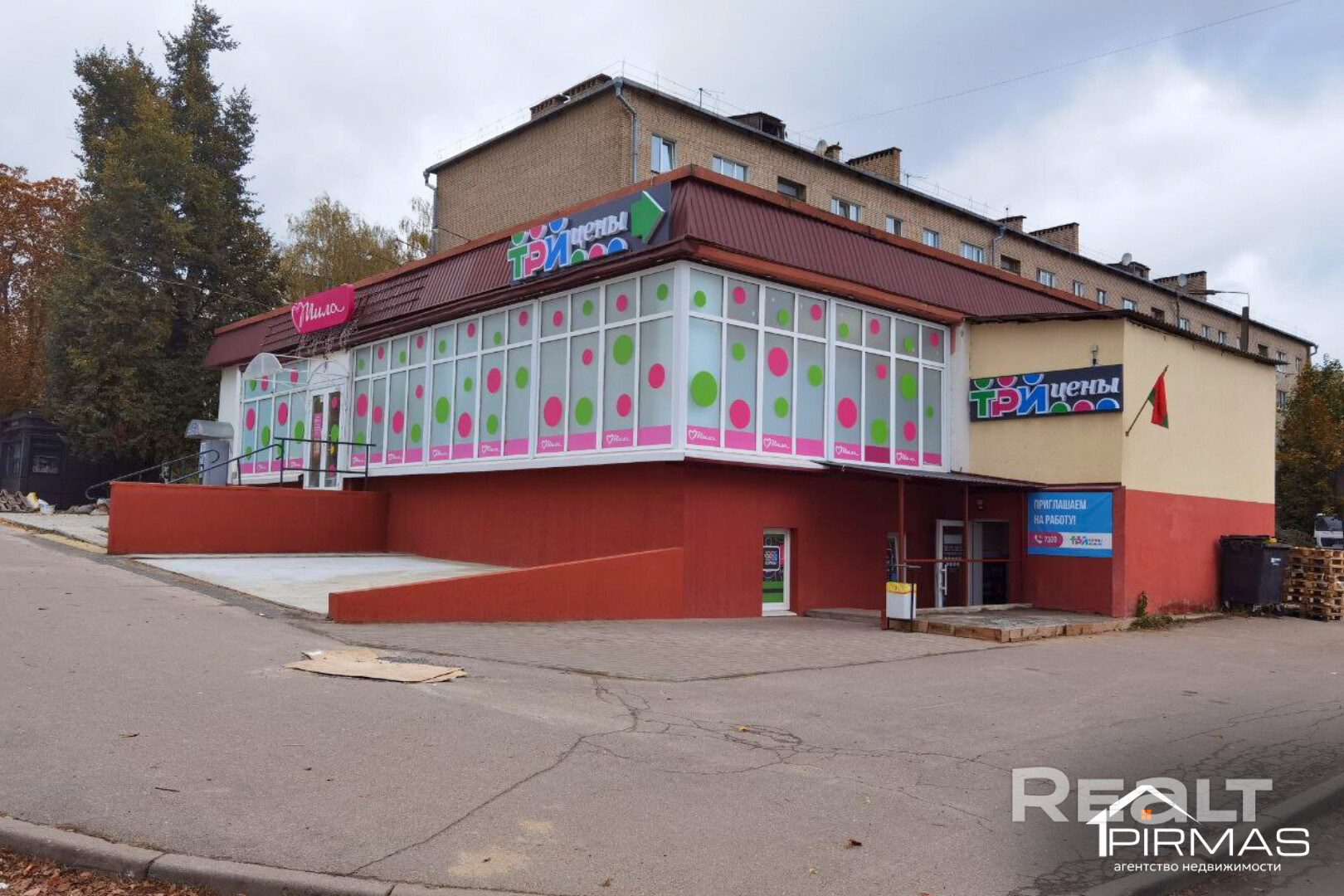 ⭕ На первом этаже расположен магазин сети «МИЛА» — одной из крупнейших в Беларуси розничных сетей косметики и бытовой химии.