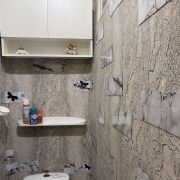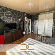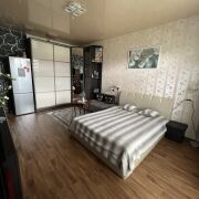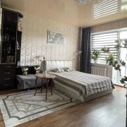 В жилых комнатах натяжные потолки, на стенах обои, на полу линолеум.