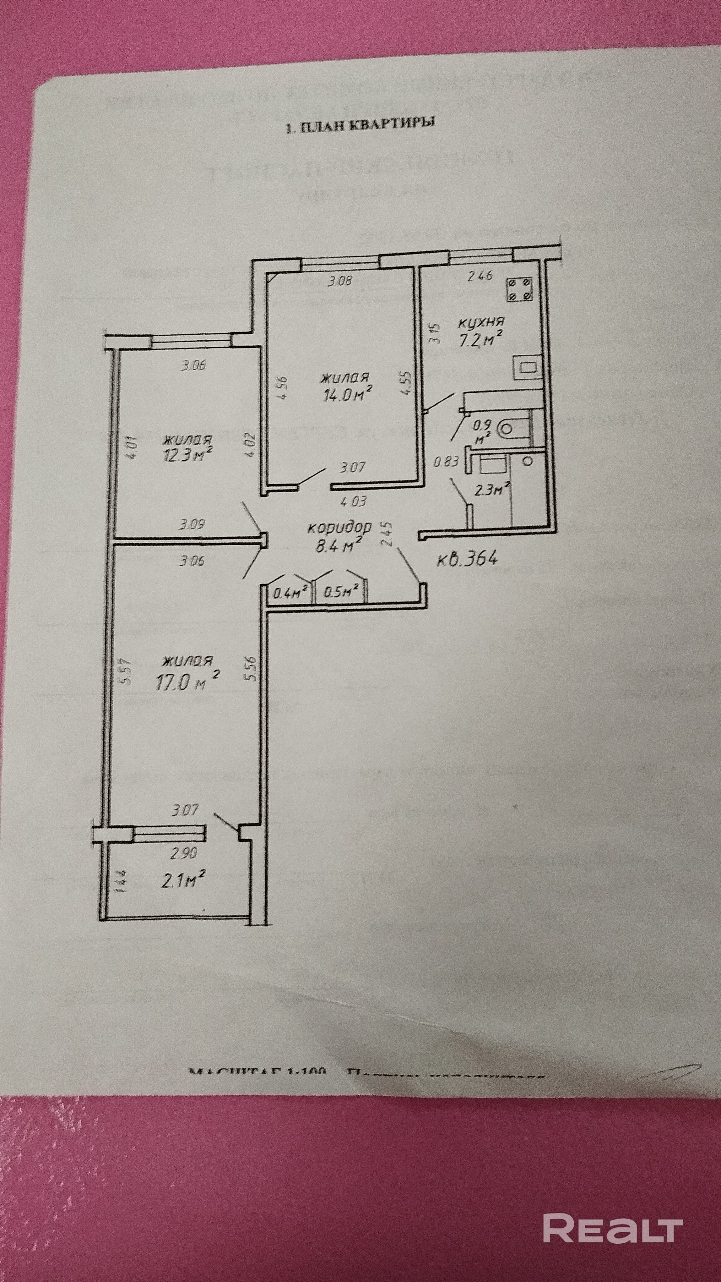 1/2 доли в трёхкомнатной квартире , Малиновка