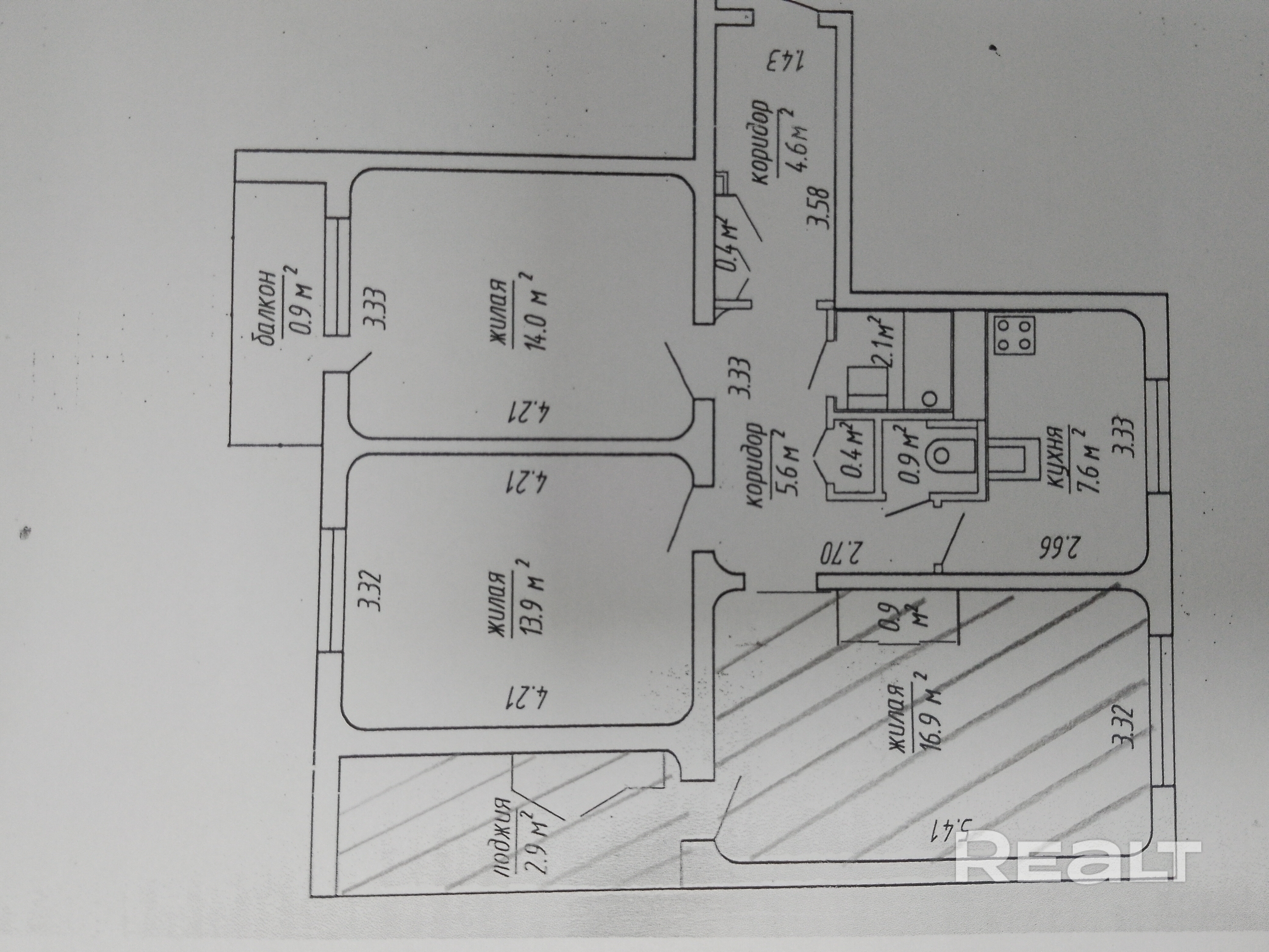 Комнаты большие 13,9 кв.м + 14 кв.м, раздельные. Общая площадь – 67,3 кв.м, по СНБ - 71.1кв.м Кухня – 7.6 кв.м. Материал стен –железобетонные блок-комнаты. Плита газовая. Раздельный санузел, встроенные шкафы для хранения вещей и бытовых мелочей. Очень тёплая и светлая квартира.