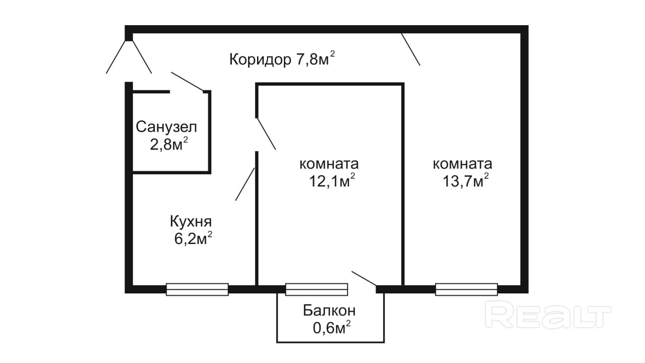 44,3м2 - 1/2 (комната 13,2м2 с балконом)