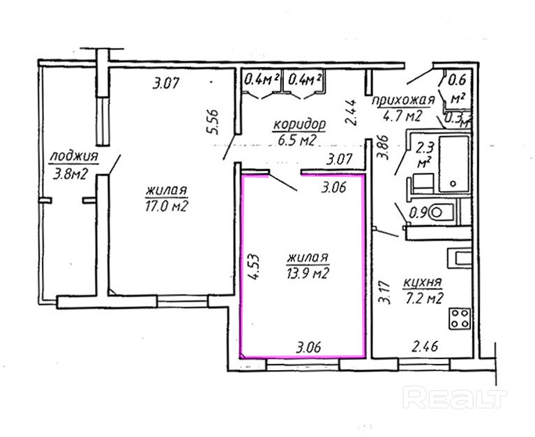 Комната (13.9 м2) в 2-х комнатной квартире по ул.Гелбки, д.24