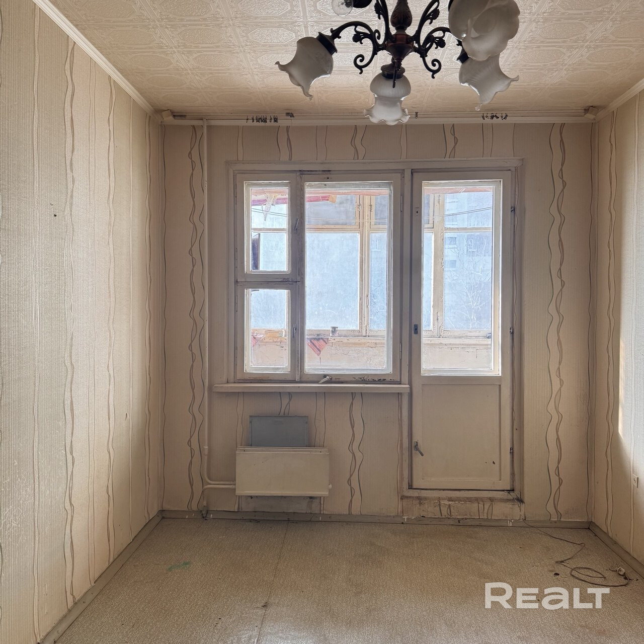 - Комната светлая и правильной формы с балконом рамы деревянные