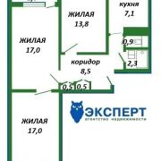 Продается большая доля в 3 комнатной квартире