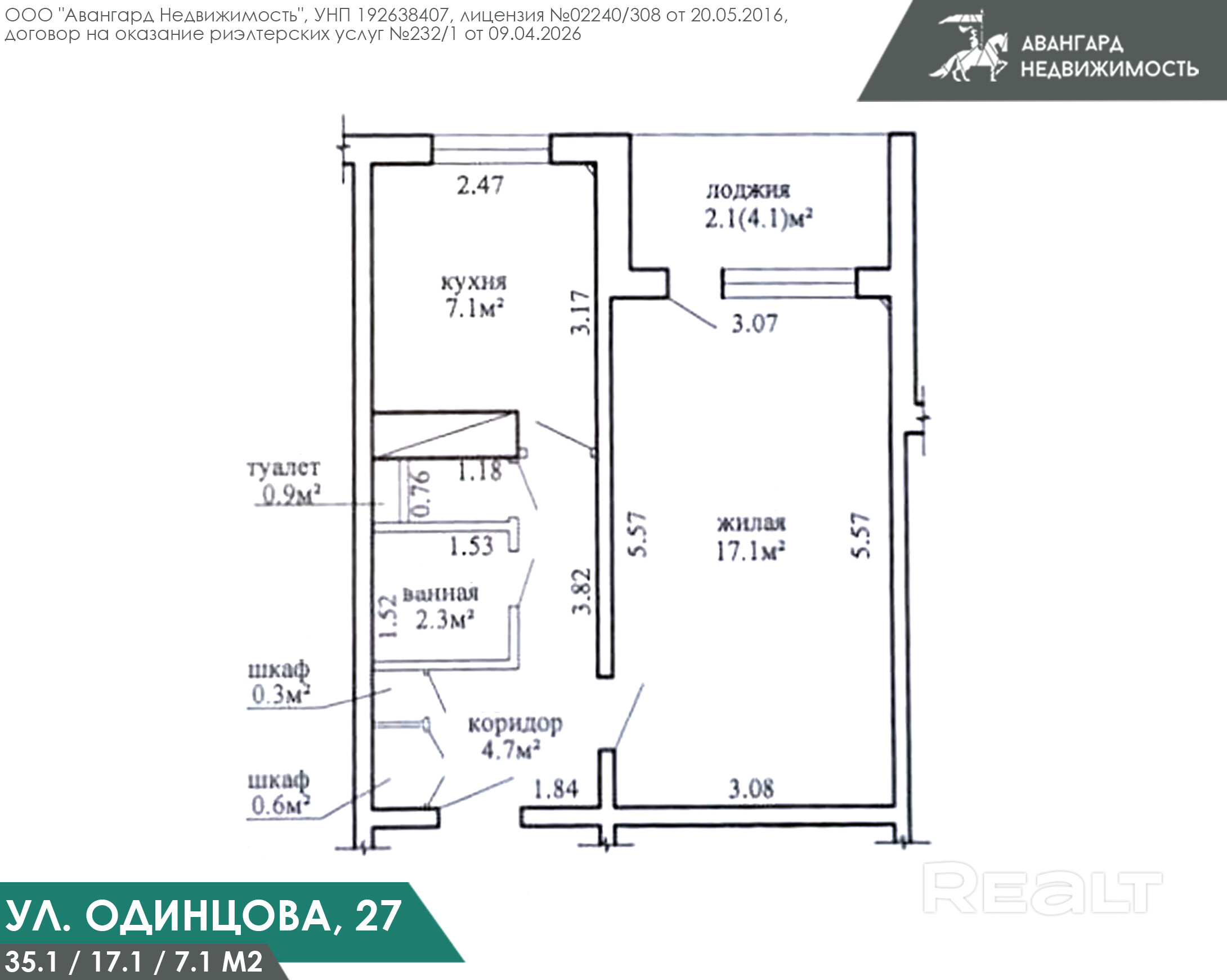 Купить 1/2 долю в 1-комнаптной квартире в Минске, ул. Одинцова, 27