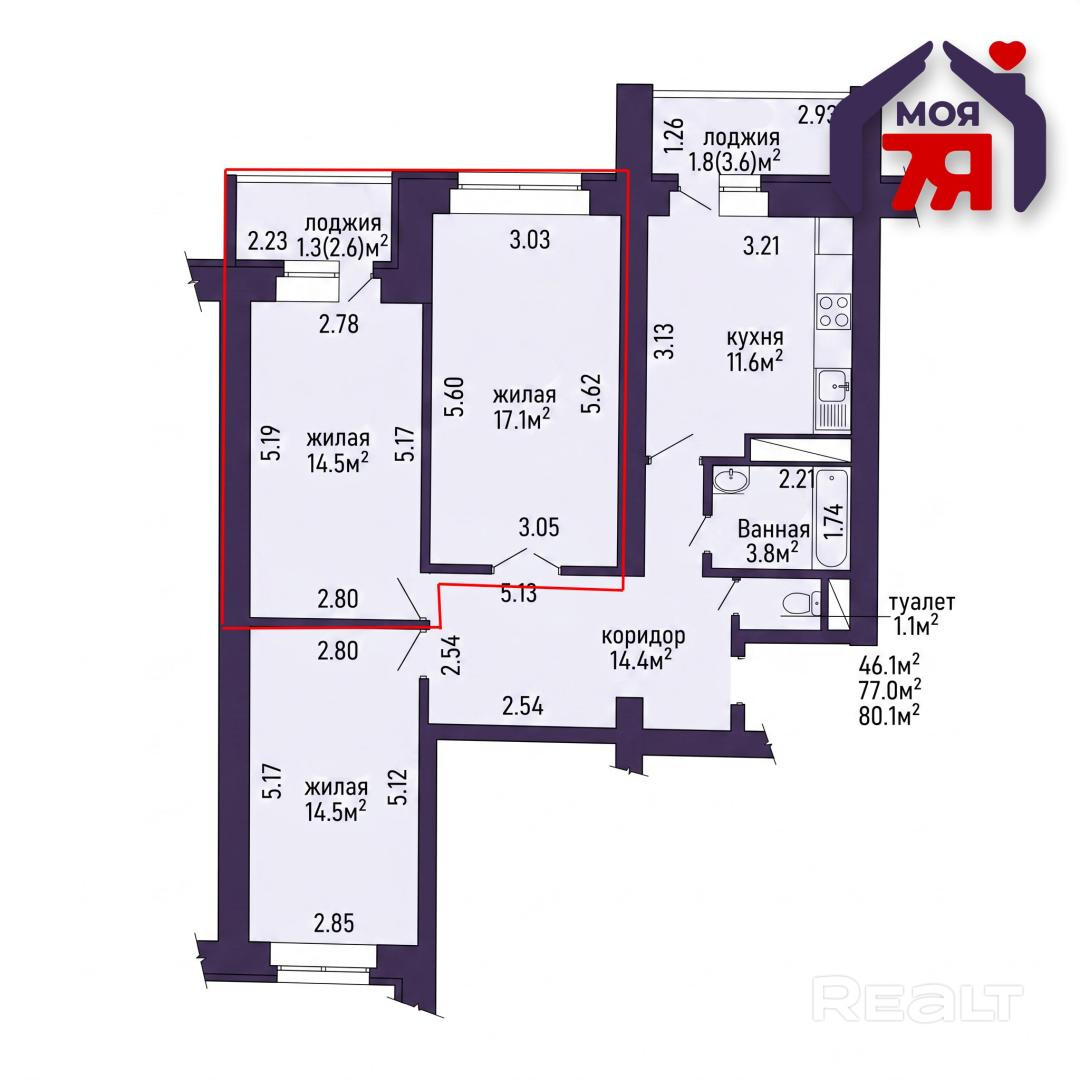 ❤️ Выгодная доля в 3‑комнатной квартире 77 м2 на 10‑м этаже с 2 изолированными комнатами, застеклённой лоджией, собственной кухней и санузлом — возможность сделать отдельный вход, готово к проживанию.