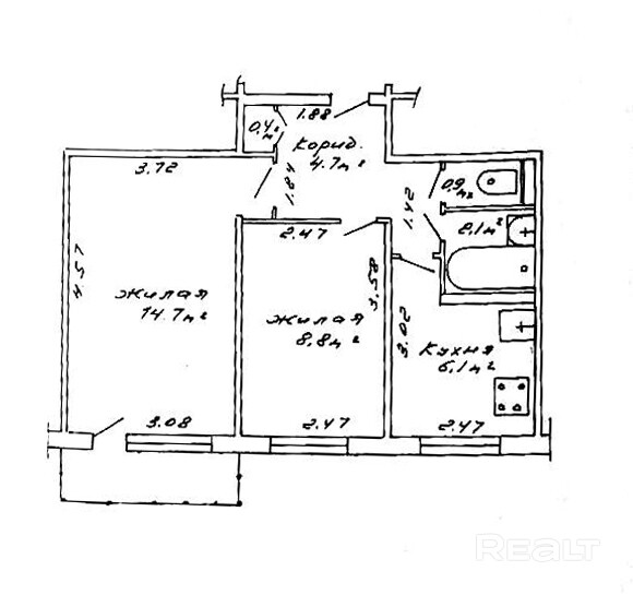 Доля выделенная и составляет 14.9 кв.м. от общей площади из которых 8.8 кв.м. площадь выделенной комнаты.