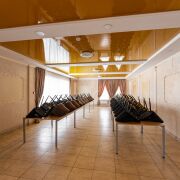 - Банкетный этаж : расположены 2 малых банкетных зала, вместимостью до 45 и 55 человек и 2 больших - до 70 человек. Здесь вы можете организовать любое мероприятие ¬ от свадьбы и дня рождения до деловой встречи и корпоративной вечеринки.
