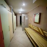 Большая сауна: 160 кв.м, рассчитана на компанию до 10 человек. Включает финскую парную, хамам, бассейн с подсветкой, комнату отдыха, бильярд, комнату релаксации, 3 душа.