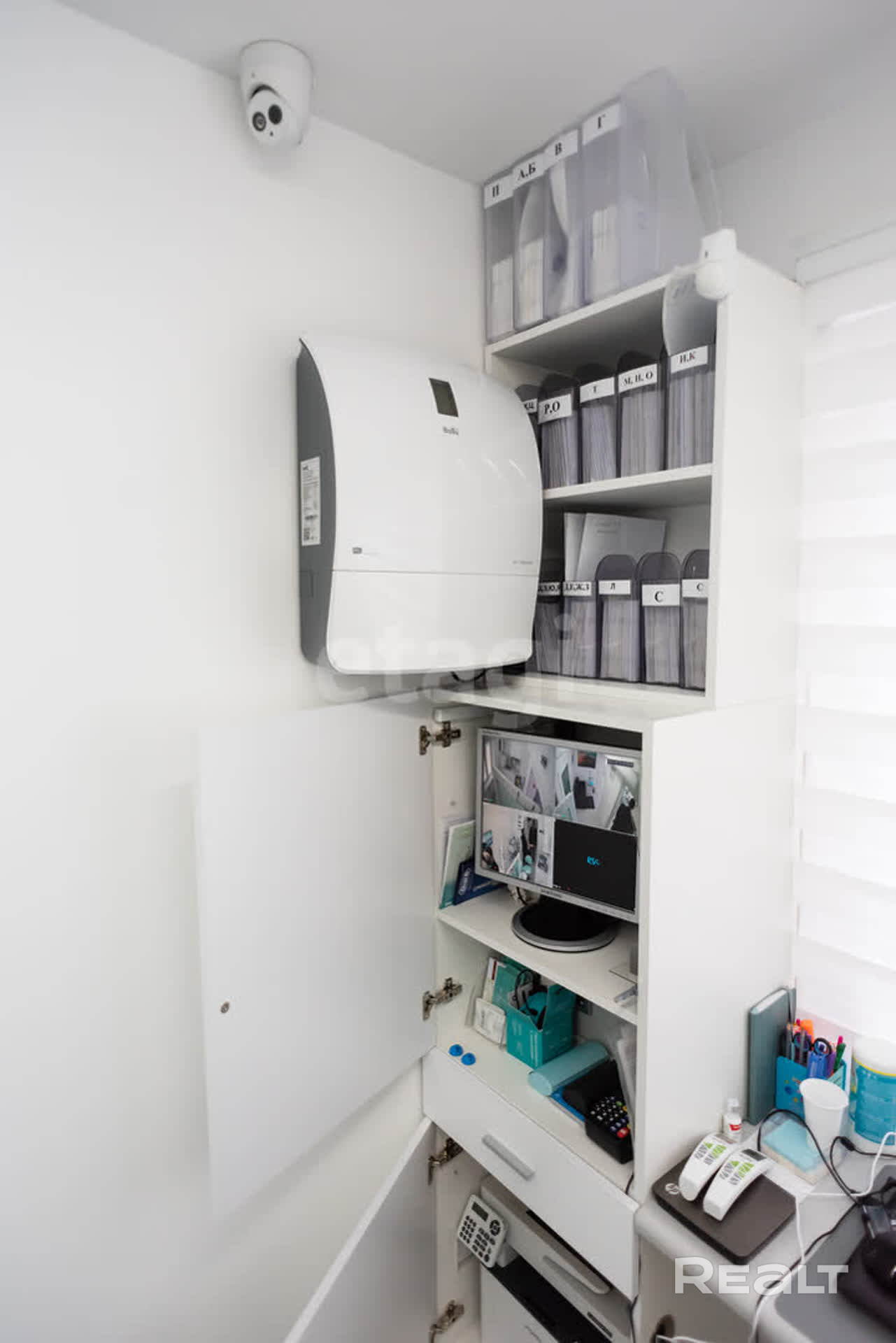 Безопасность: видеонаблюдение внутри помещения обеспечивается 3 камерами (одна со звуком), с выводом на экран монитора в кабинете врача и на мобильный телефон руководителя через приложение, видео-домофон, контроль доступа персонала с нумерованными электронными ключами (снятии/постановка на контроль сопровождается смс на мобильный телефон руководителя с указанием номера ключа), система локальной сигнализации (при несанкционированном доступе звуковая сирена, приходит смс)не требует дополнительных оплат, видеонаблюдение снаружи (организовано ТС). МЧС –круглосуточный контроль и недорогое техобслуживание.