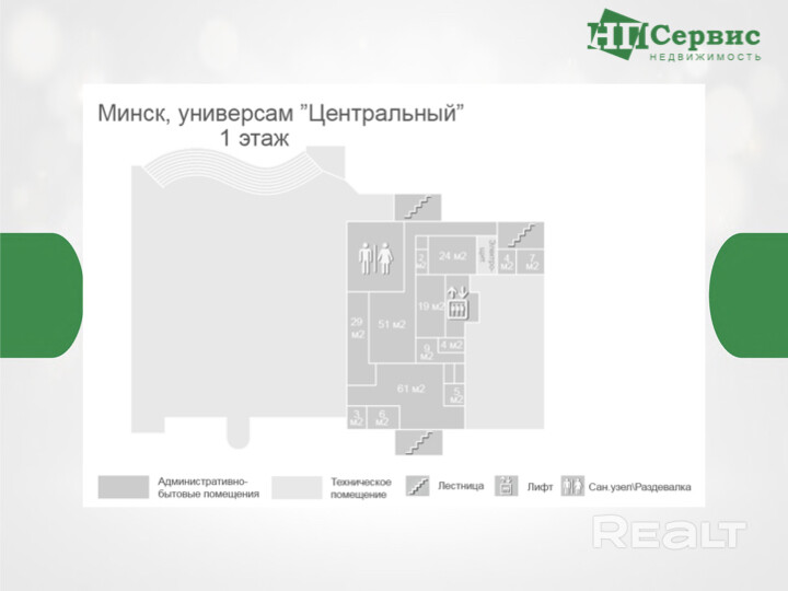 Якорный продуктовый оператор. Универсам «Центральный» находится в самом центре Минска, на главном проспекте столицы, на пересечении 2-х линий метро «Московская» и «Автозаводская». Объект расположен в культурном, торговом и туристическом центре столицы Беларуси.