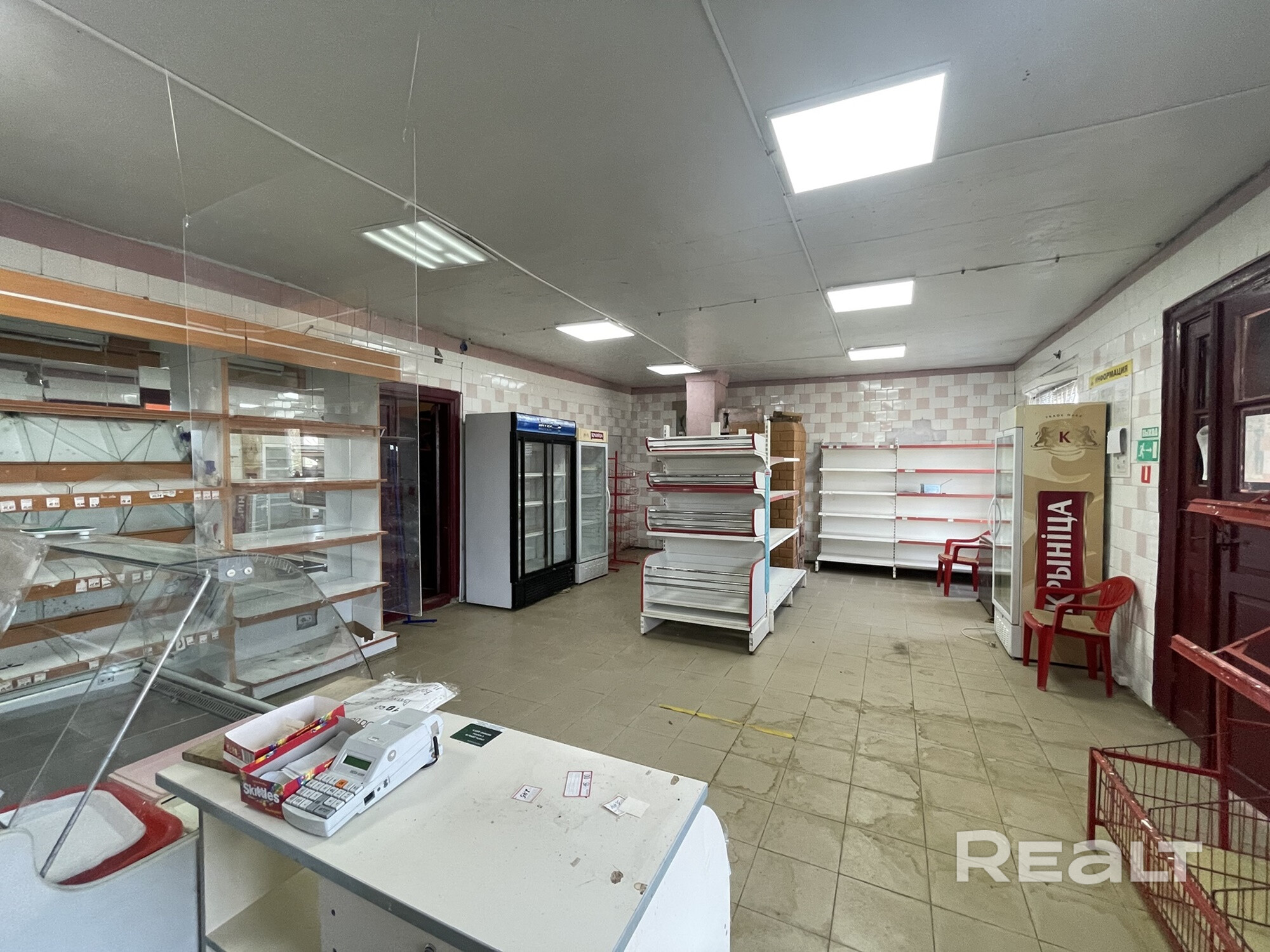 Продажа с торговым оборудованием. Есть кондиционер, холодильная камера. Новая проводка. В подсобных помещениях оборудован санузел.
