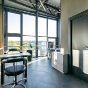 Здание 2021 года постройки, общая площадь 835.1 м.кв., фундамент ж/б, конструкция строения каркас металлический, наружные стены панели металлические с утеплением из минеральной ваты, внутренниестены ж/б, перекрытия ж/б плита, крыша панели металлические с утеплением из минеральной ваты, окна алюминиевый профиль, ПВХ профиль, стеклопакеты. Высота потолка первого этажа 3,91м., второго 5,25 м.
