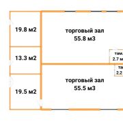 Магазин состоит из двух торговых залов площадью 55,5 и 53,8 м2 и трёх подсобных помещений 19,5/13,3/19,8 м2. Высота 3,10 м. Здание магазина находится в центре деревни возле остановки пригородного автобуса и сельсовета на участке площадью 0,0651 га.