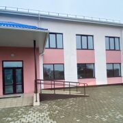 Наружные стены здания - блоки газосиликатные, покрыты декоративной штукатуркой и окрашены. Внутренняя отделка здания выполнена декоративной штукатуркой. На полу плитка. Окна ПВХ профиль. Крыша - металлопрофиль.