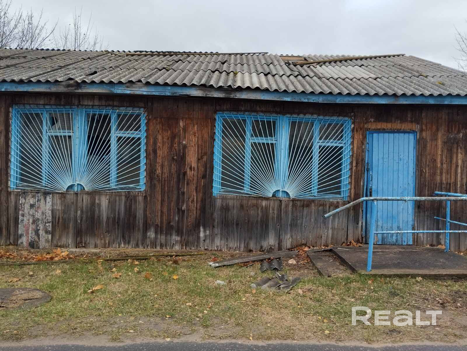 Бывшее здание магазина. Имеется небольшой участок. Сарай. Находится в 100метрах от оживленной улицы.