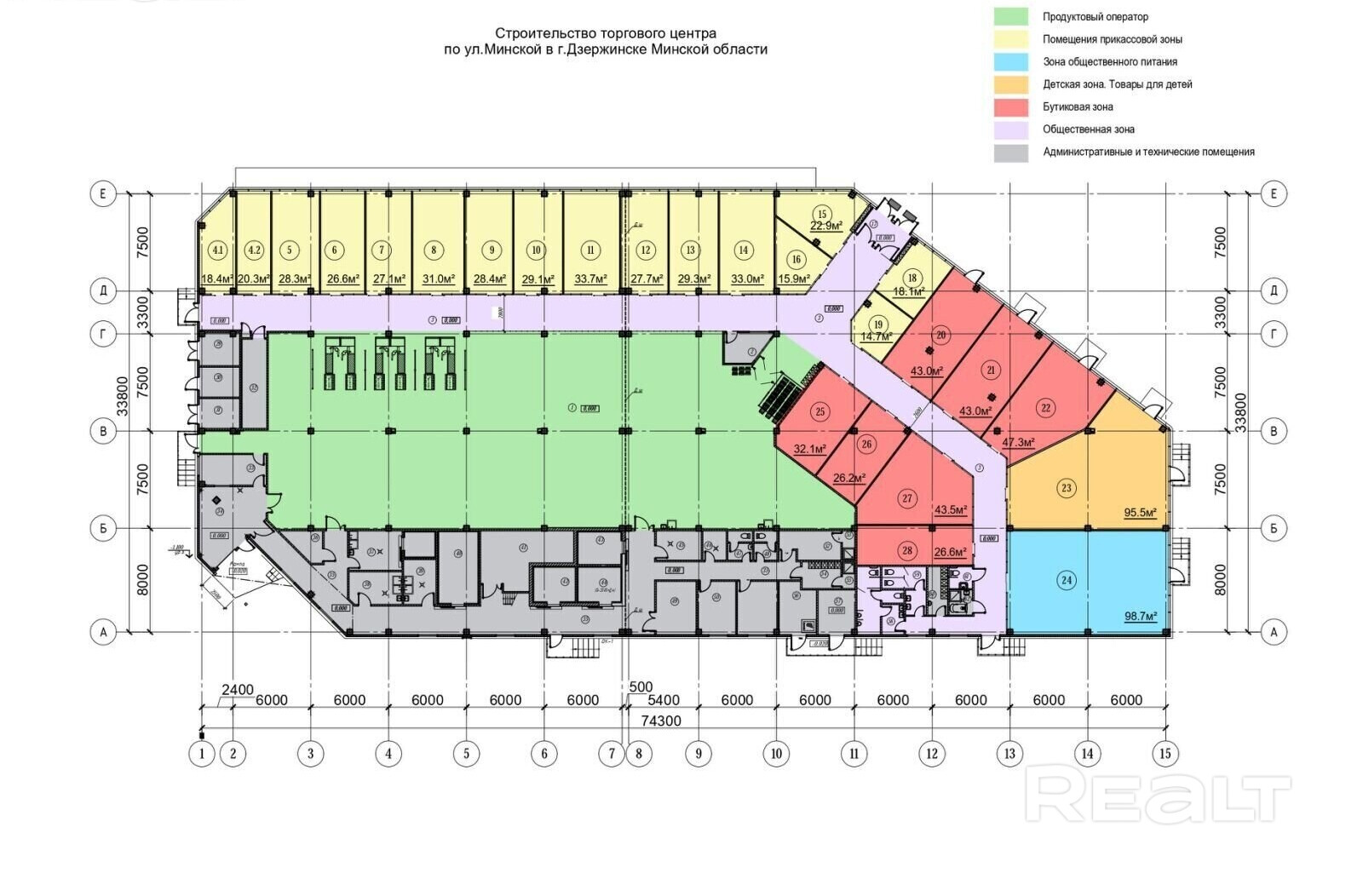 Торговые помещения в г. Дзержинске Торговый Центр "Мiнскi" по ул.Минской (рядом с кафе Колос). Площадь торгового центра - 2300 кв.м. Состав объекта:продуктовый оператор "Маяк" -1048 кв.м.,помещения прикасовой зоны -840 кв.м.:аптека,зоомагазин,кафе,печатный центр и др. Продается помещение под номером 28 (27 кв.м.) Помещения передаются полностью готовые к работе:со счетчиками,ремонтом,водой. Торговый центр сдан ,акт ввода от 14 марта 2025 г.