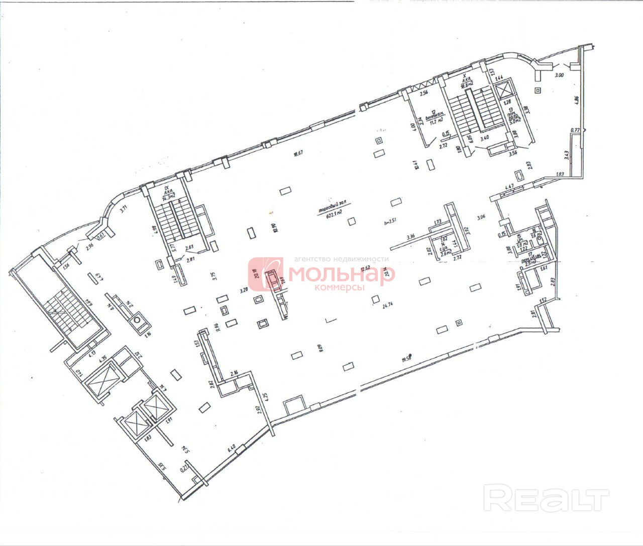 Просторный и светлый зал: 722,4 м2 свободного пространства для реализации ваших идей.