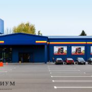 - Современное отдельно стоящее здание, специализированное для розничной торговли.