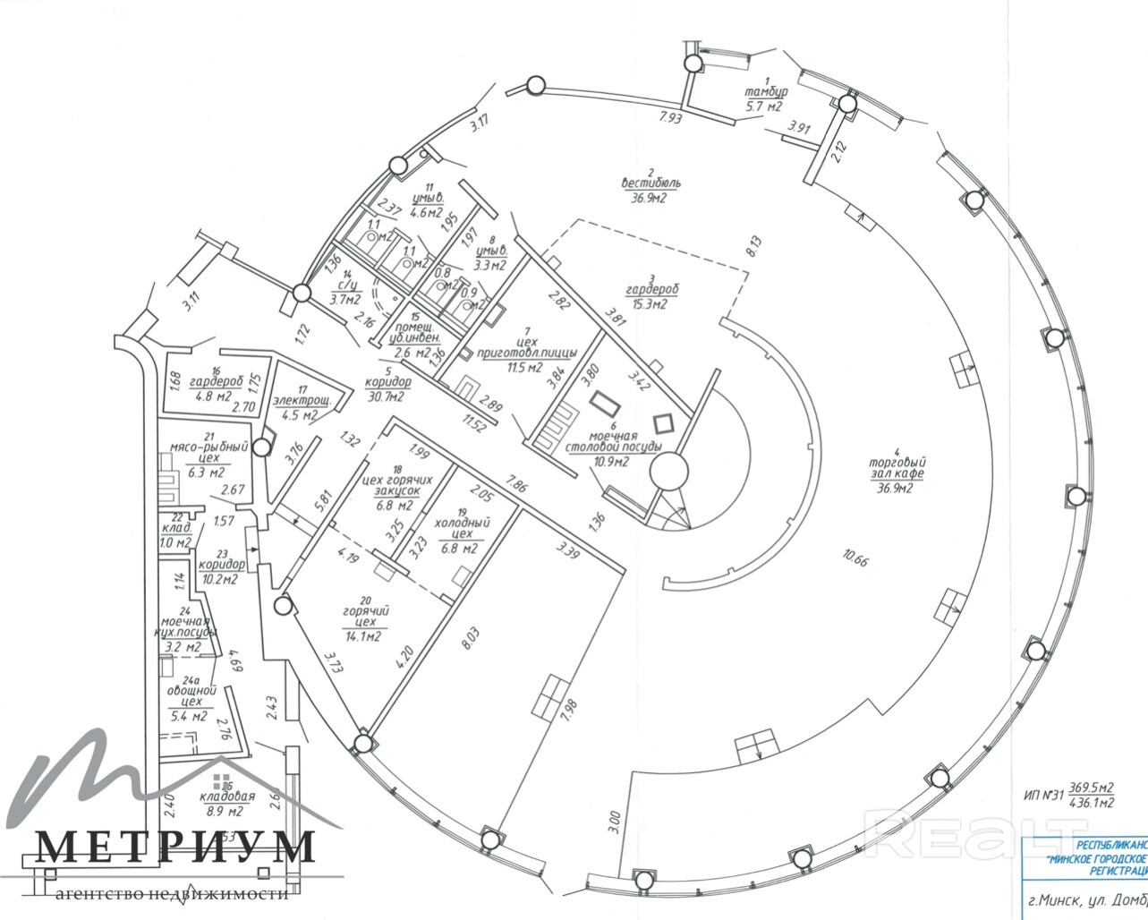 Продажа помещения кафе 436,1 м2, ул. Домбровская, 9 (БЦ «Sky Towers»)