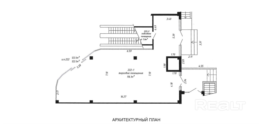 · Вход: отдельный, с общего коридора, с витринным остеклением, также предусмотрен дополнительный вход для погрузки-разгрузки