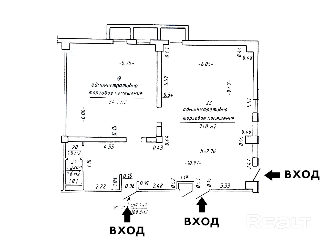 Тип объекта: Административно-торговое помещение общей площадью: 108,3 м2.