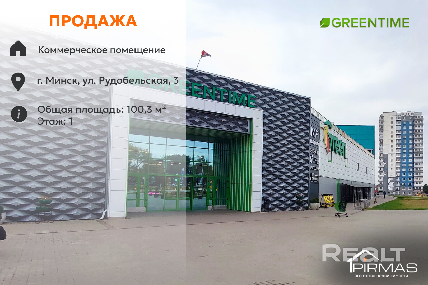 ✅ Торговое помещение 100 м² в ТЦ GREEN TIME на Рудобельской, 3 — арендный бизнес с потенциалом
