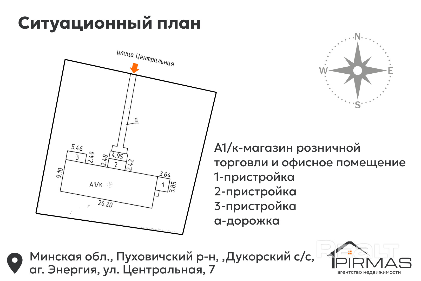 Предлагаем Вам рассмотреть готовый коммерческий объект с понятной историей работы и устойчивым потоком клиентов. Это отдельно стоящее здание розничной торговли, расположенное в Минской области, Пуховичский район, аг. Энергия, ул. Центральная, 7 — на въезде в населённый пункт и вблизи одной из ключевых магистралей страны.