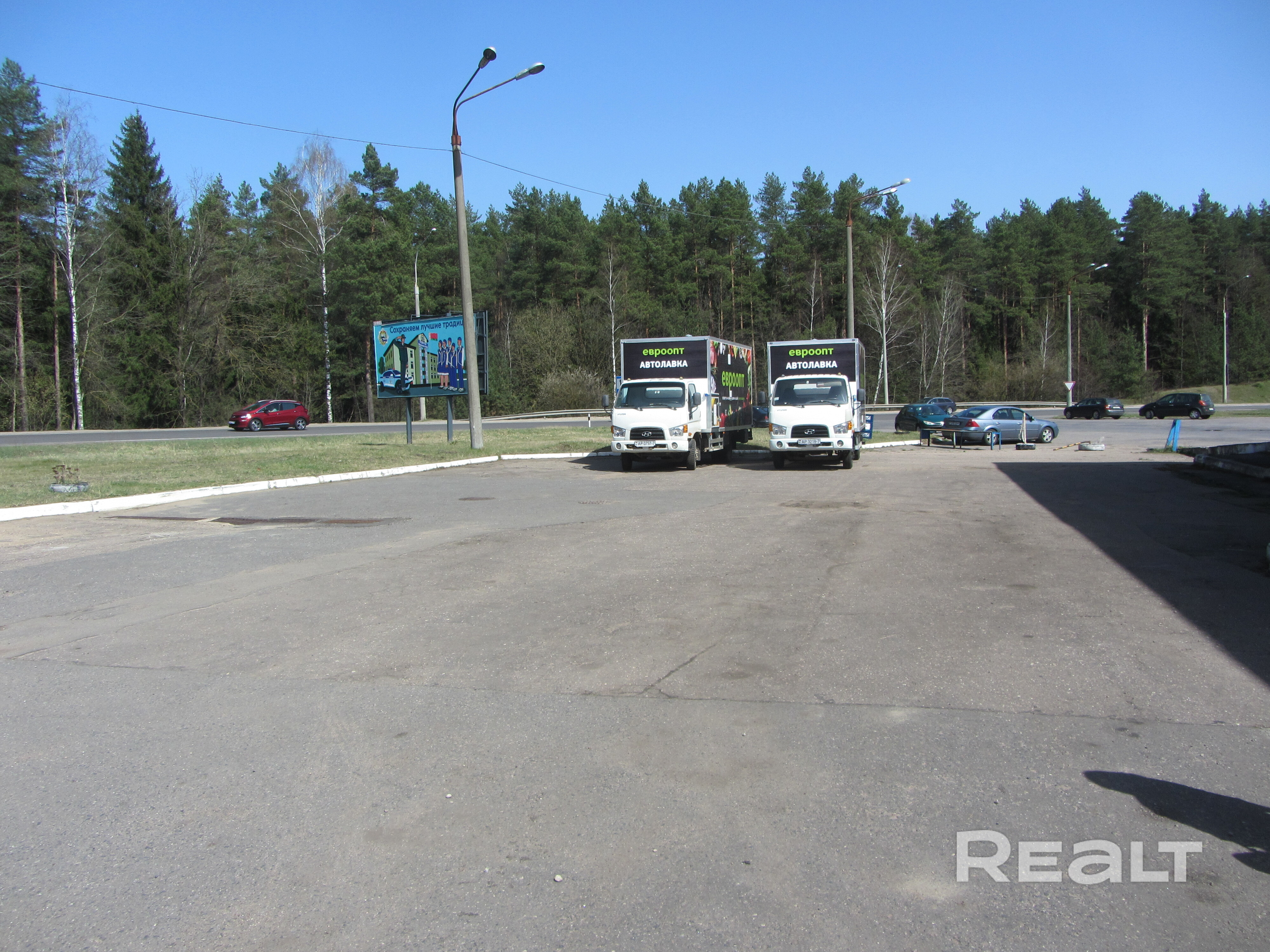 Покрытие площадки асфальтобетонное, в отличном состоянии. На смежном участке располагается автозаправочная станция (Газпромнефть), зарядка для электрокаров, здание СТО.