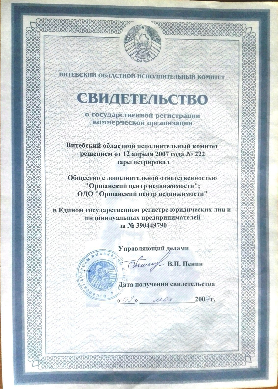 Свитедетельство и лицензия агентства