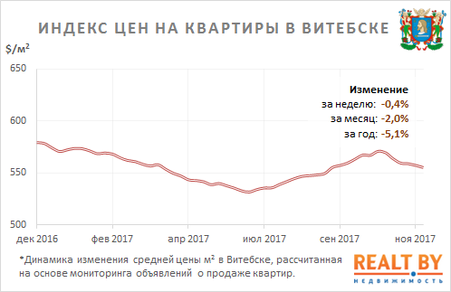 За неделю с 20 по 27 ноября информационно-аналитическим центром Realt.by были отмечены следующие изменения на первичном и вторичном рынках недвижимости города Витебска: