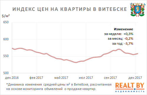 За неделю с 4 по 11 декабря информационно-аналитическим центром Realt.by были отмечены следующие изменения на первичном и вторичном рынках недвижимости города Витебска: