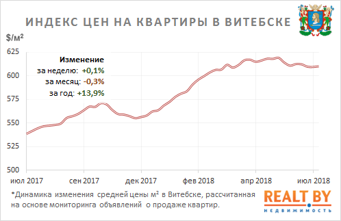 За неделю со 2 по 9 июля информационно-аналитическим центром Realt.by были отмечены следующие изменения на первичном и вторичном рынках недвижимости города Витебска: