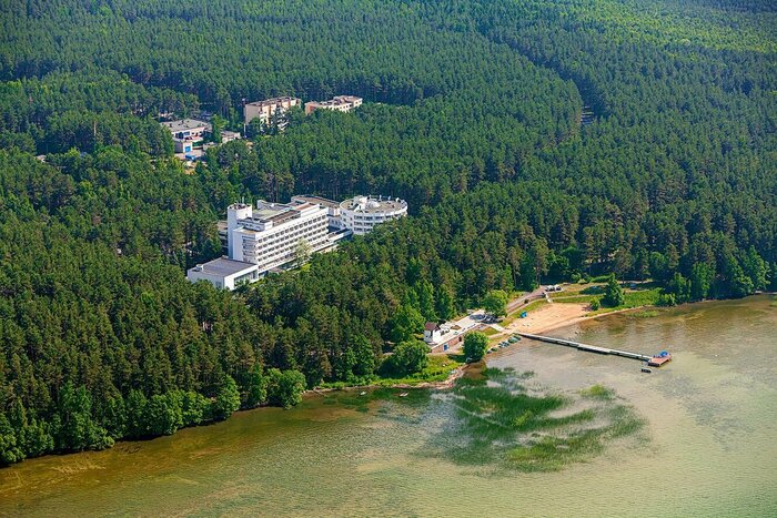 Этих самых счастливчиков с путевками ждут два озера, пирс, абсолютно бесплатный бювет с минеральной водой, бассейн, бары, магазины, а главное — великолепный сосновый бор, давший название этому месту.