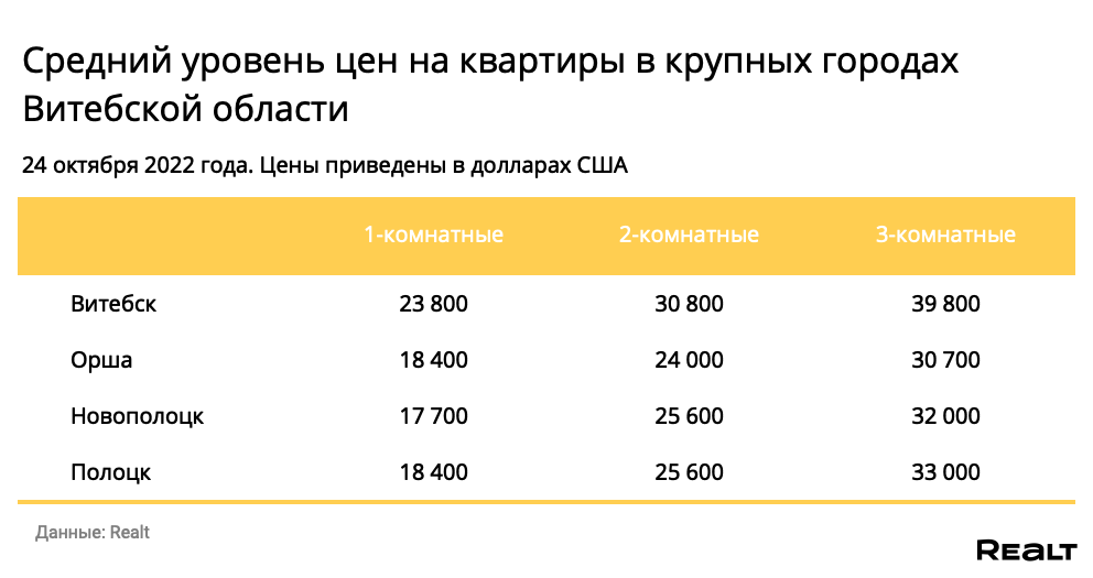 Мониторинг цен предложения квартир в Витебске и городах Витебской области за 17−24 октября 2022 года