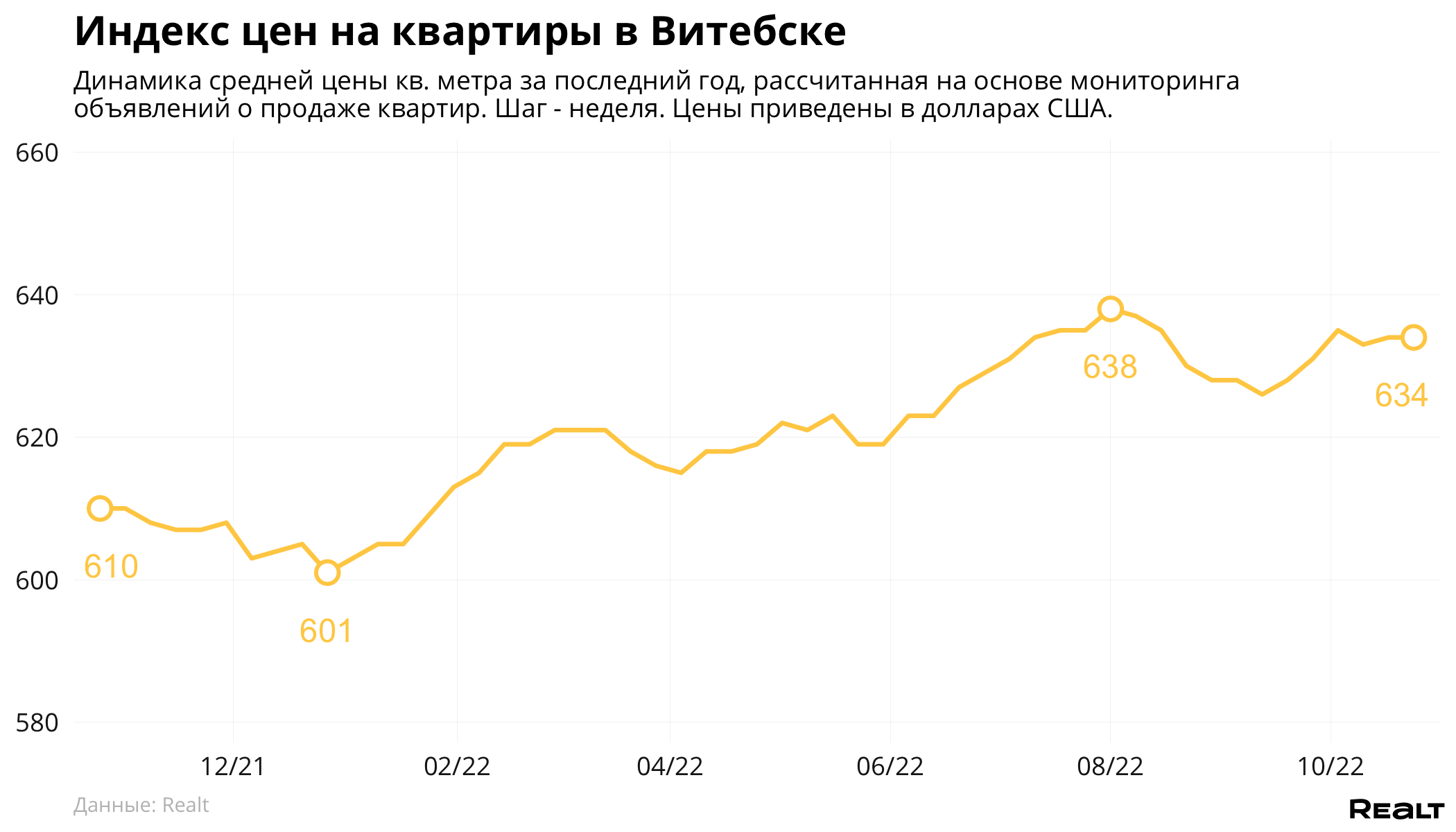 Средняя цена в объявлениях о продаже квартир в Витебске не изменилась и составила 634 $/м2.