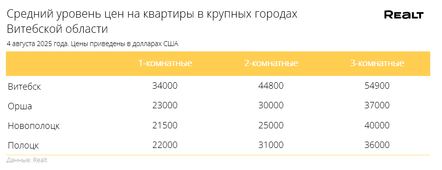 Для сравнения приведем средние цены на квартиры в других городах Беларуси:
