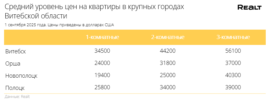Для сравнения приведем средние цены на квартиры в других городах Беларуси: