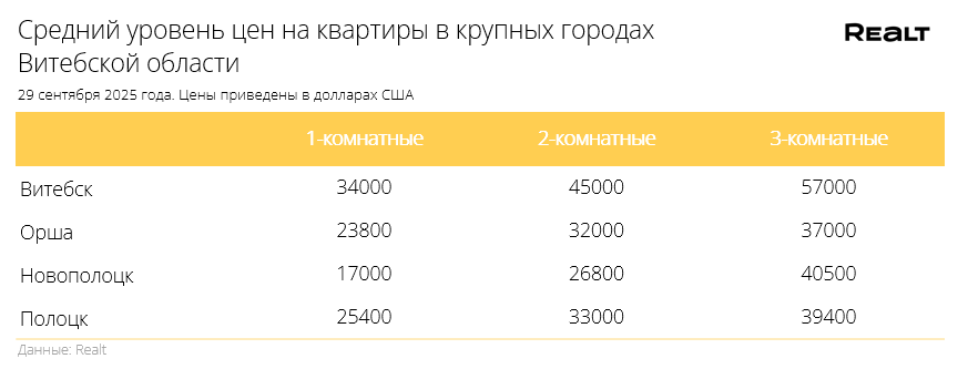 Для сравнения приведем средние цены на квартиры в других городах Беларуси: