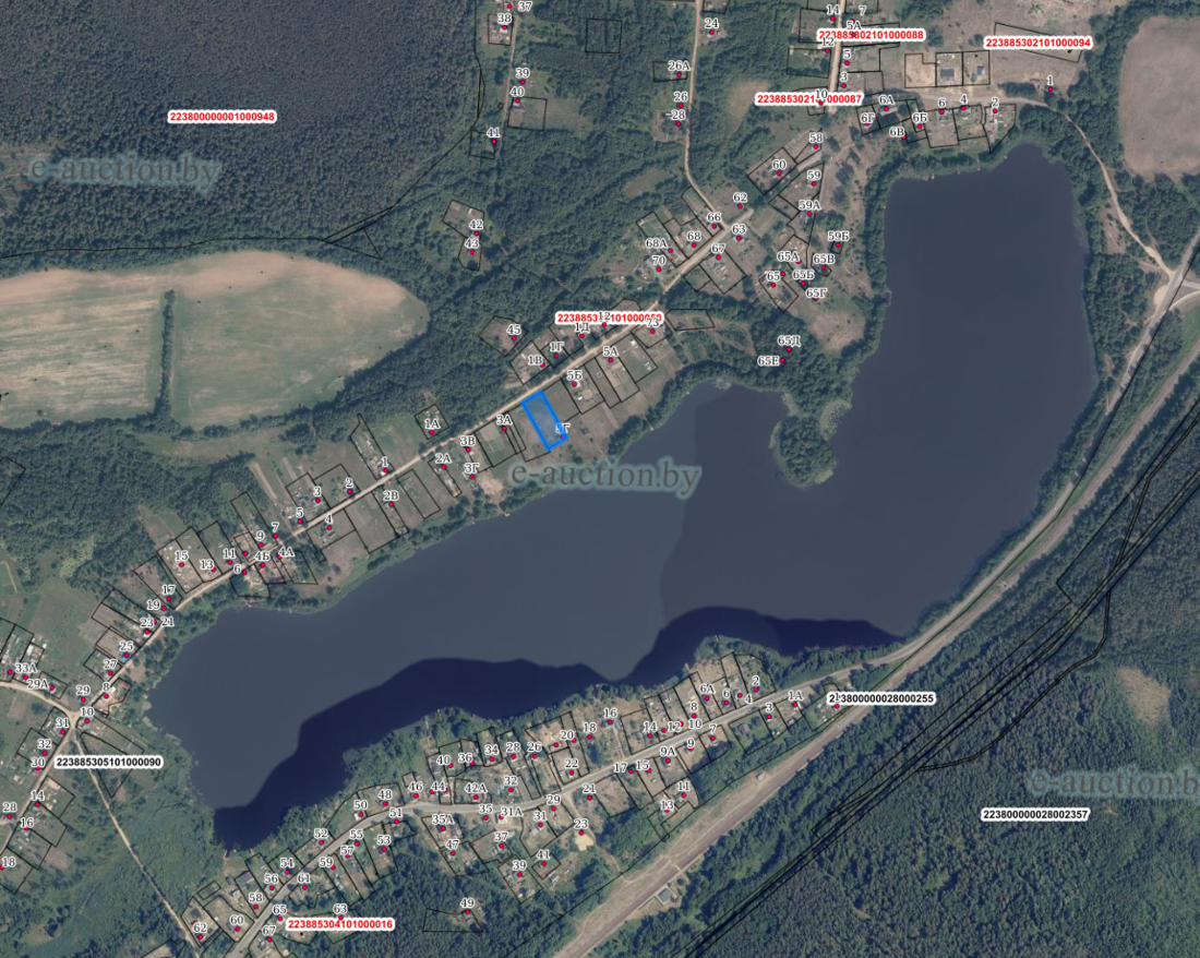 На торги попал участок в деревне Скоброе. Он находится на первой береговой линии одноименного озера и занимает 25 соток. Предназначается территория для строительства и обслуживания жилого дома, размещения объектов усадебной застройки (строительства и обслуживания одноквартирного (блокированного) жилого дома) с объектами обслуживания.