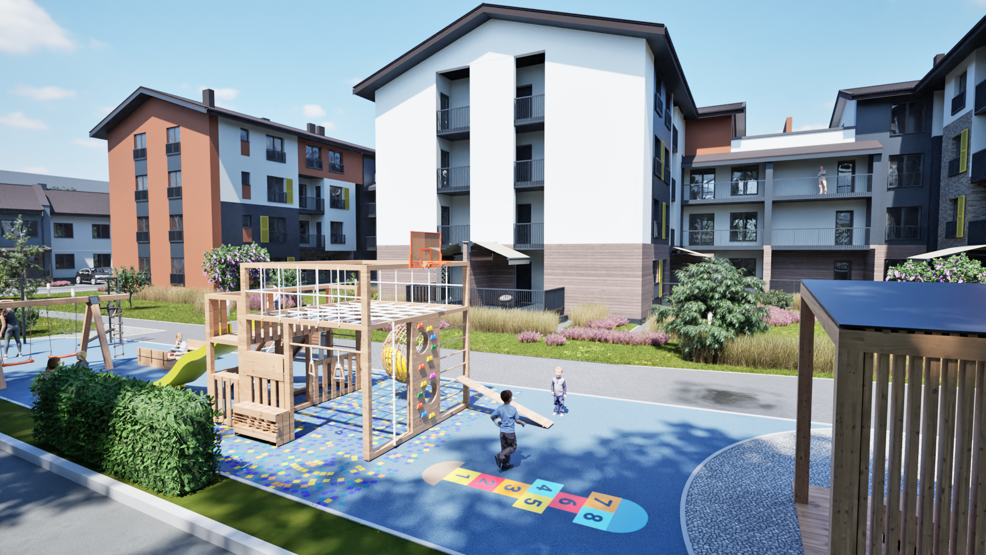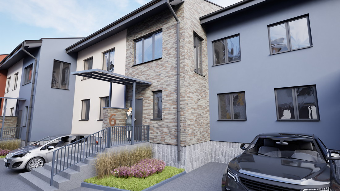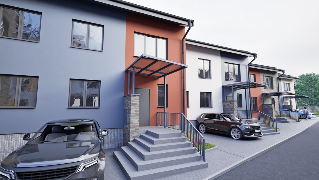 В четырехэтажном доме будут представлены как компактные студии, так и просторные пентхаусы с террасами. Что касается таунхасов, то это будут блокированные дома площадью от 160 квадратов. У каждого домика предусмотрены собственный двор и парковка на две машины.