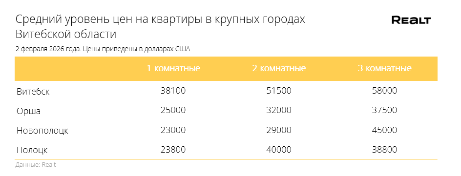 Рынок замер? Что произошло со стоимостью квартир в Витебске и области за 26 января — 2 февраля 2026 года