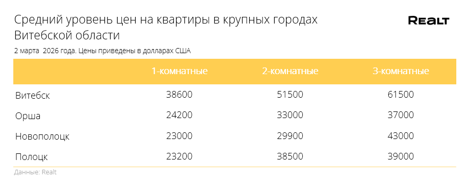 Стоимость квадрата для двушек уменьшилась. Что произошло со стоимостью квартир в Витебске и области за 23 февраля — 1 марта 2026 года